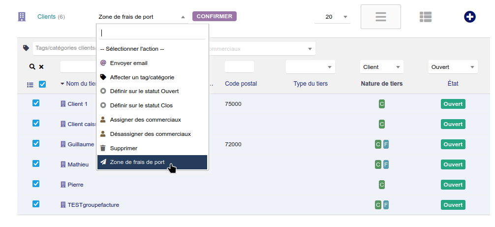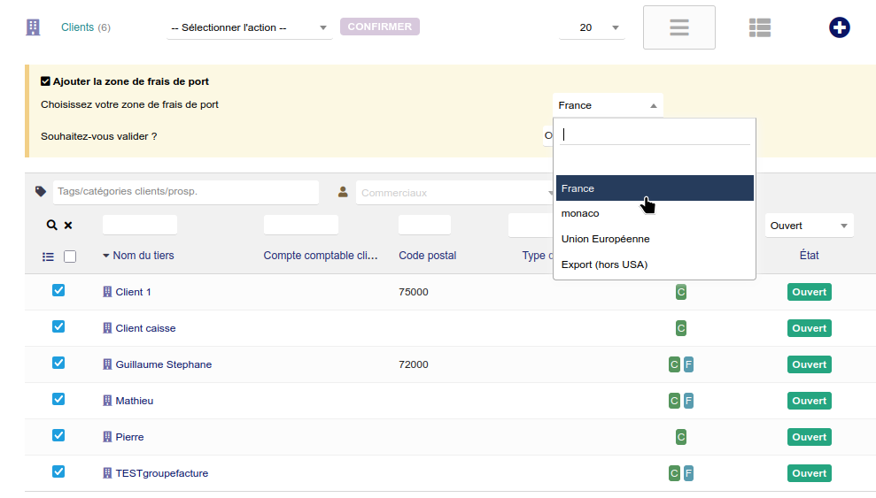 2.1.2 - Affecter la zone de frais de port en masse à une sélection de clients