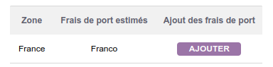 La ligne de frais de port sera automatiquement supprimée si vous modifiez la zone de frais de port, ou que vous modifiez la quantité ou le montant d'une des lignes au moins. Et le bouton "Ajouter" redeviendra actif.