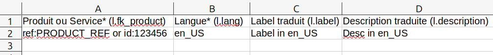 Une fois le fichier importé, les traductions sont disponibles dans l’onglet « traduction » de chaque produit/service :